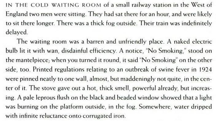 This is an interesting one. I first encountered it in the first Pan Book of Horror Stories and I’ve never forgotten it. The introduction is well observed with a beautiful and cynically cold writing style (which, to give a more contemporary reference point, is reminiscent of Will Self’s style). It seems to be setting up a perfect short story which could be, to give another reference, quite Chekhovian in that it’s a theatrical, single scene, one act, two-hander. However, it devolves into a story within a story which one of the two characters narrates to the other and this secondary tale takes precedence. I can’t help feeling that Fleming missed a trick in not developing the initial setting to run alongside the secondary but he chose the linear method of introduction – narration – denouement, but he was a young writer at the beginning of his career at the time so perhaps we can forgive him that. It’s such a shame that Peter Fleming (older brother of Ian) was such an explorer and adventurer and dedicated most of his time to travel writing rather than developing his skills with fiction. Anyway, here’s the corker of opening scene-setter: